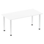 Impulse 1600mm Straight Table White Top Chrome Post Leg I003594 DD