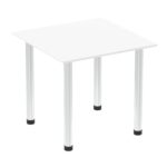 Impulse 800mm Square Table White Top Chrome Post Leg I003579 DD