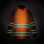 Concealed zip front with double storm flap cover and press stud closure, Hood in collar with draw cords, Hood with innovative fixture for improved hearing through hood, 2 chest pockets with flap, Fixed ID pocket on a band, Napoleon pocket, Inner pocket, 2 front pockets with flap, Adjustable cuffs using hook and loop fastening, Used in combination with the Weert, quilted lining HYD040350, Glow in the Dark (GID) tape for improved visibility in low lighting environments, GID tape is an enhancement to the garment and not an intrinsic part of EN ISO 20471, Approximately 8 hours of glow once charged for 5-10 minutes dependent on light source, No batteries required, 220 gsm Ripstop Polyester laminate fabric, Conforms to EN ISO 20471:2013 Class 3 High Visibility, Conforms to EN343:2003+A1:2007 Class 3:3, Conforms to EN ISO 13688:2013 General requirements for protective clothing, RIS-3279-TOM Issue 1