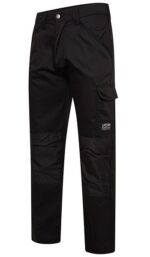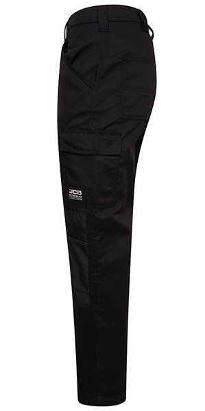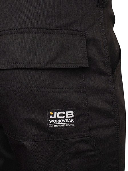 Essential cargo work trousers with multiple pockets and knee pad pockets with Velcro® fastening. Triple stitched flat felled seams and reinforced back hem for durability. Reflective JCB branding for added security and protection.