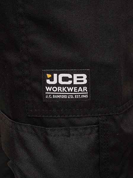• Two back pockets, right with velcro pocket flap. JCB reflective branding