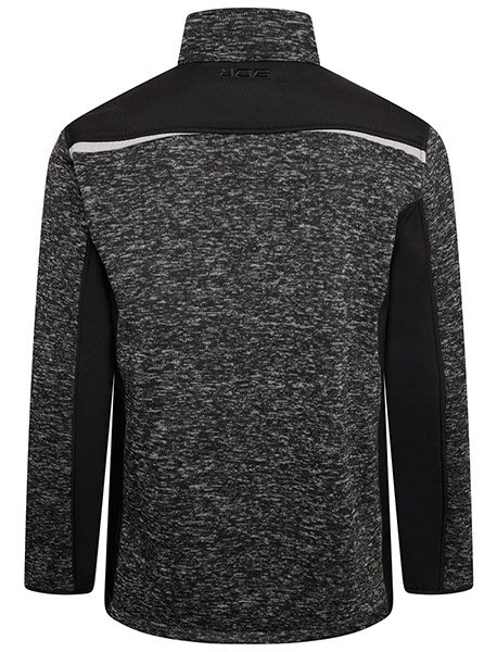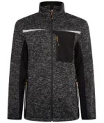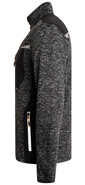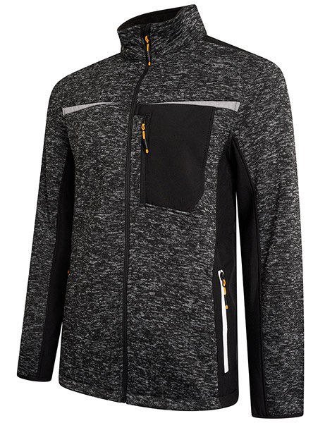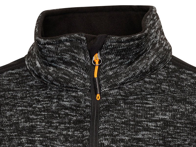 Knitted style quarter zip jumper fleece with two zipped side access pockets. Elasticated taped cuffs and drawcord around bottom hem for comfort during the whole working day. Reflective detail on chest, shoulders and around side pockets. Softshell side panels and under arms for ease of movement whilst working and funnel style neck for extra warmth. Wear it as an outer layer in mild temperatures.
