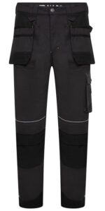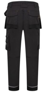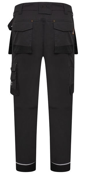 Essential work trousers with multiple pockets, and two Cordura reinforced holster pockets. They also include top loading knee pad pockets. Reflecive piping added above the knee and around the ankle.