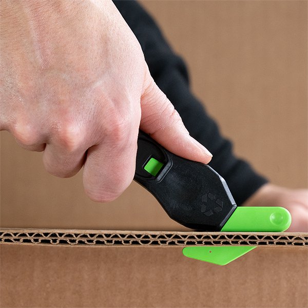 The Klever Eco XChange20 with Narrow Blade Head features a recessed blade with a reusable handle and is the FIRST plastic safety cutter made of recycled material. This lightweight yet durable cutter includes a replaceable blade head and integrated metal tape splitter. The replaceable 20 head dual narrow openings and high-quality carbon steel blade allow for double the usage while the longer handle allows for increased reach. Keep the handle, replace the head!