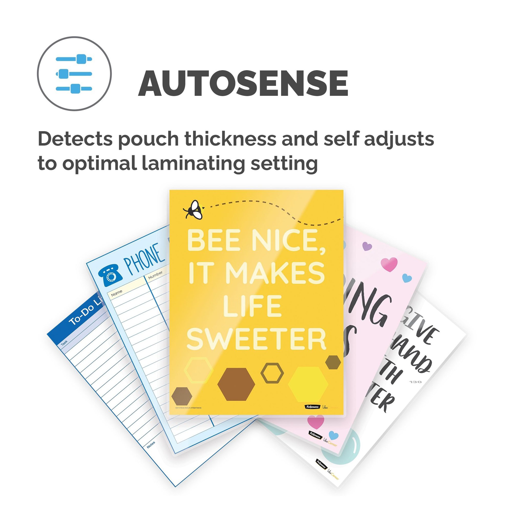 • AutoSense detects pouch thickness and self adjusts to the optimal laminating setting