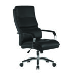 Elevate your workspace with this PU leather effect executive office chair, combining luxury and functionality. The chair features densely padded lumbar support and headrest for ultimate comfort, while mesh accents add breathability and style. Chrome arms with padded mesh armrests enhance both durability and comfort. With a 150kg weight capacity, itÂ’s designed for strength and long-lasting use.