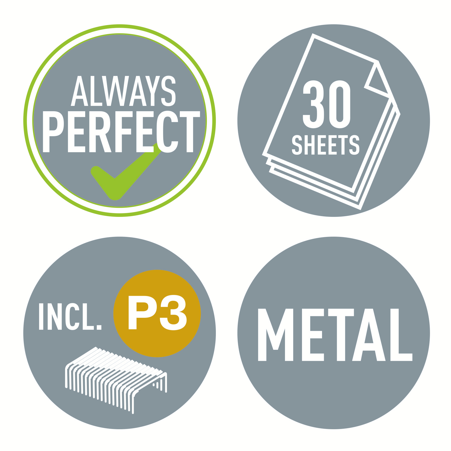 • To use with Leitz Power Performance staples – always sharp edges due to ongoing quality checks – for perfect stapling