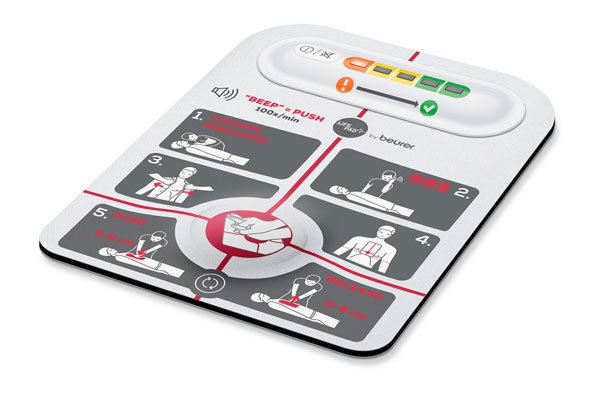The LifePad guides you through the resuscitation process and helps to perform the right steps safely, Step-by-step resuscitation instructions: Easy to use for people aged 12 and over, no prior knowledge required Visual and acoustic feedback system: For optimum compression depth and frequency Compact design: 21 x 16 cm (approx. DIN A5 size) for easy storage in any bag Flexible material: Adapts to the individuals body shape Easy positioning: Instructions and marking directly on the pad – can be used on people aged 12 and over Practical application: Pad is splash-proof in accordance with IP 44 and can be used in combination with a defibrillator (acoustic signal can be switched off for this) LifePad as a single-use product incl. 1 x CR2032 battery (except for training purposes) Medical device