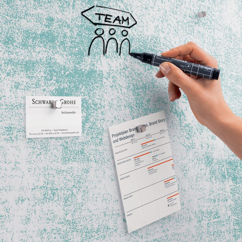 Box contents: 1x Magnetic Glass Board, screws, anchors for solid walls, mounting instructions incl. drilling template, 2 extra-strong SuperDym magnets GL705 (silver, cube design)