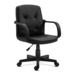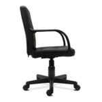 This medium back leather faced executive office chair combines button detail to the backrest, with decorative stitching detail and sculpted integral lumbar support, seat height adjustment, stylish heavy duty arms and a large black nylon base fitted with twin wheel hooded castors – all for a great price.