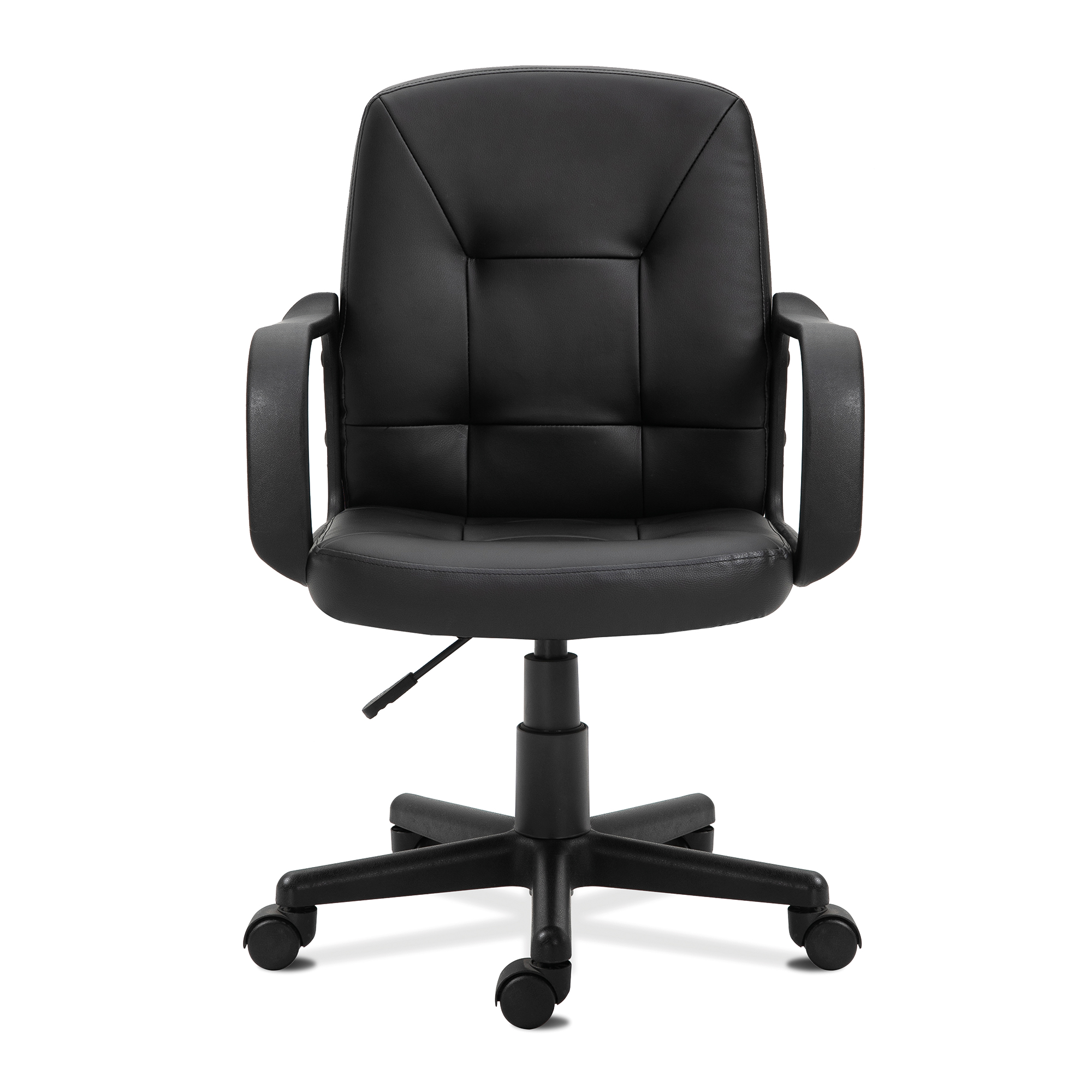 Medium Back Leather Faced Executive Armchair with Decorative Stitching Detail – Black
