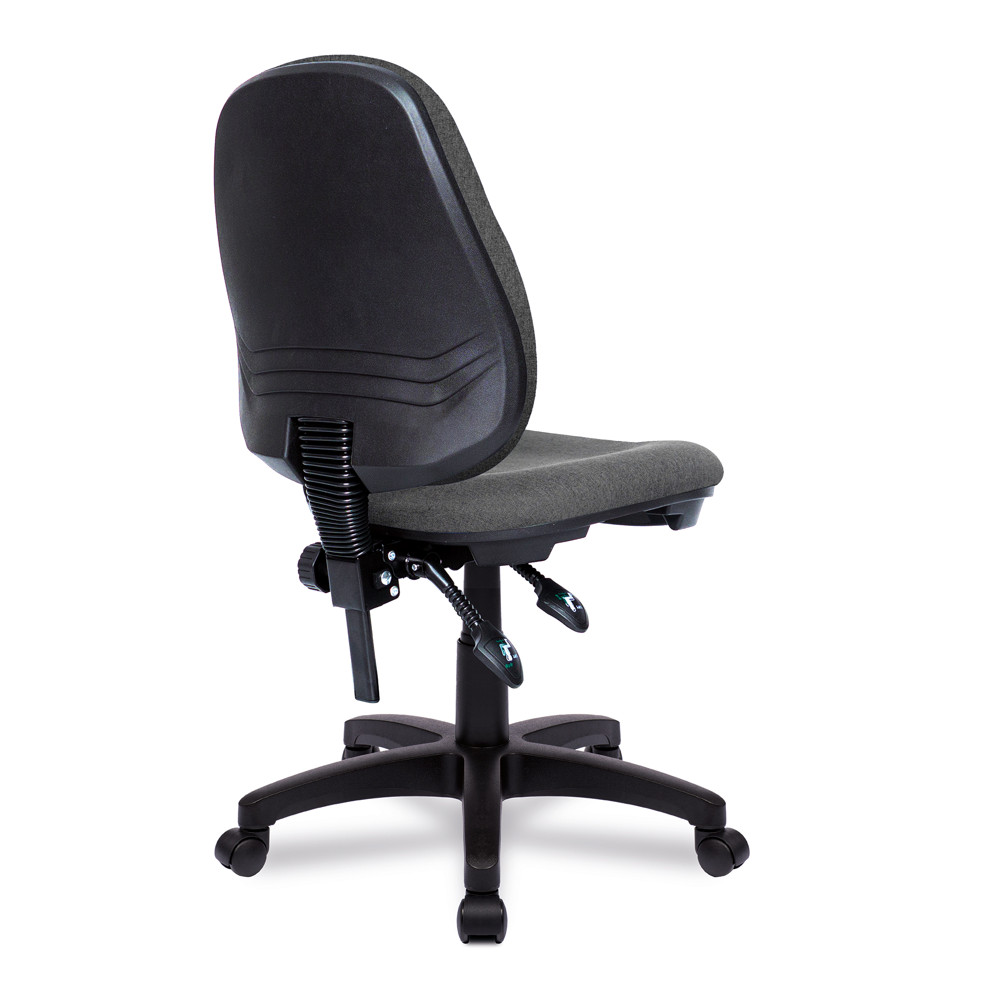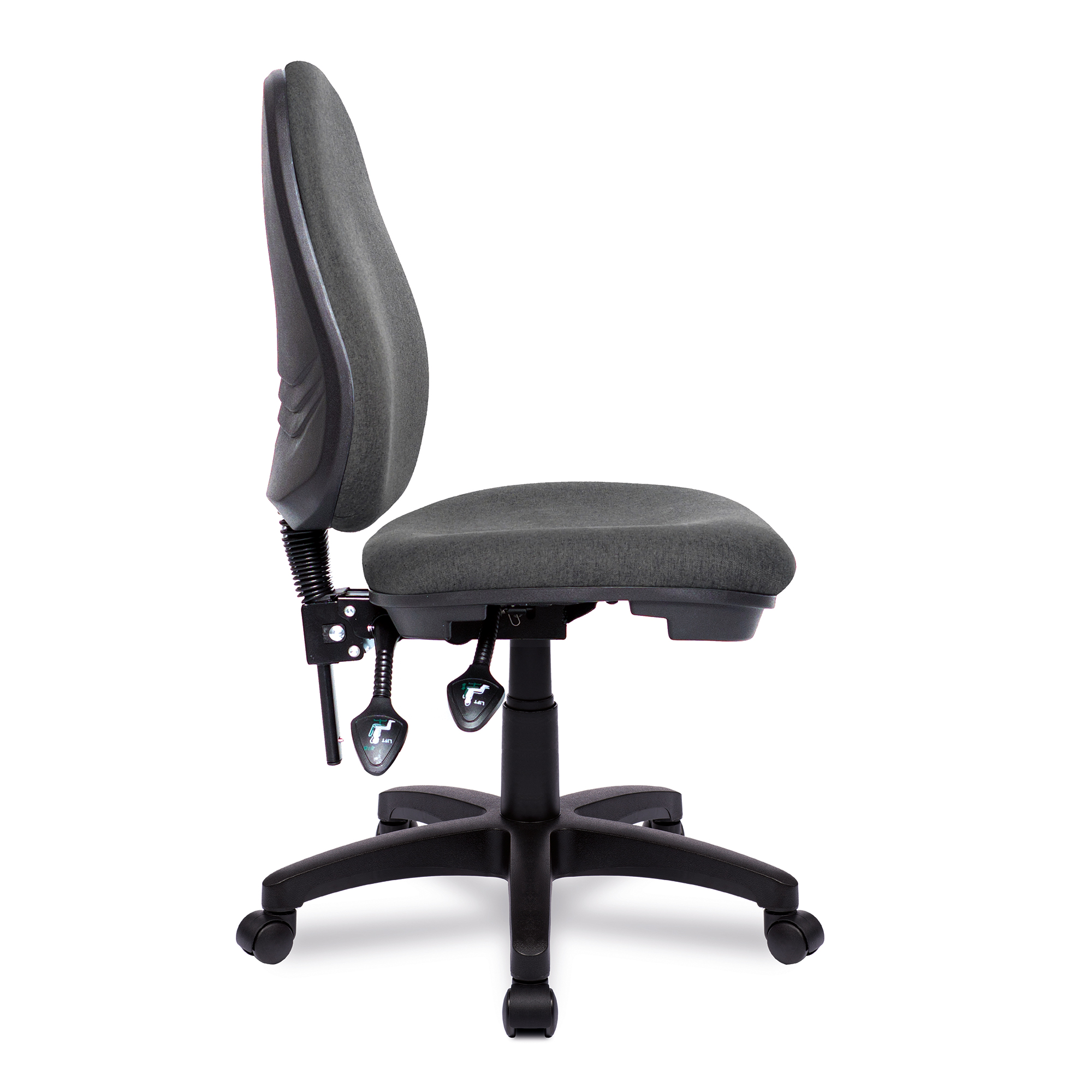 Our trusty twin lever task operator chair features a posture curved seat with waterfall front and is fitted with an under-seat skirt. The backrest is contoured and sculpted with integrated lumbar support. The chair is certified to BS EN 1335 Level 3, and a robust gaslift provides easy seat height adjustment. It also offers easy back height, back rake and back tilt adjustment and is finished with a black 5 star base.