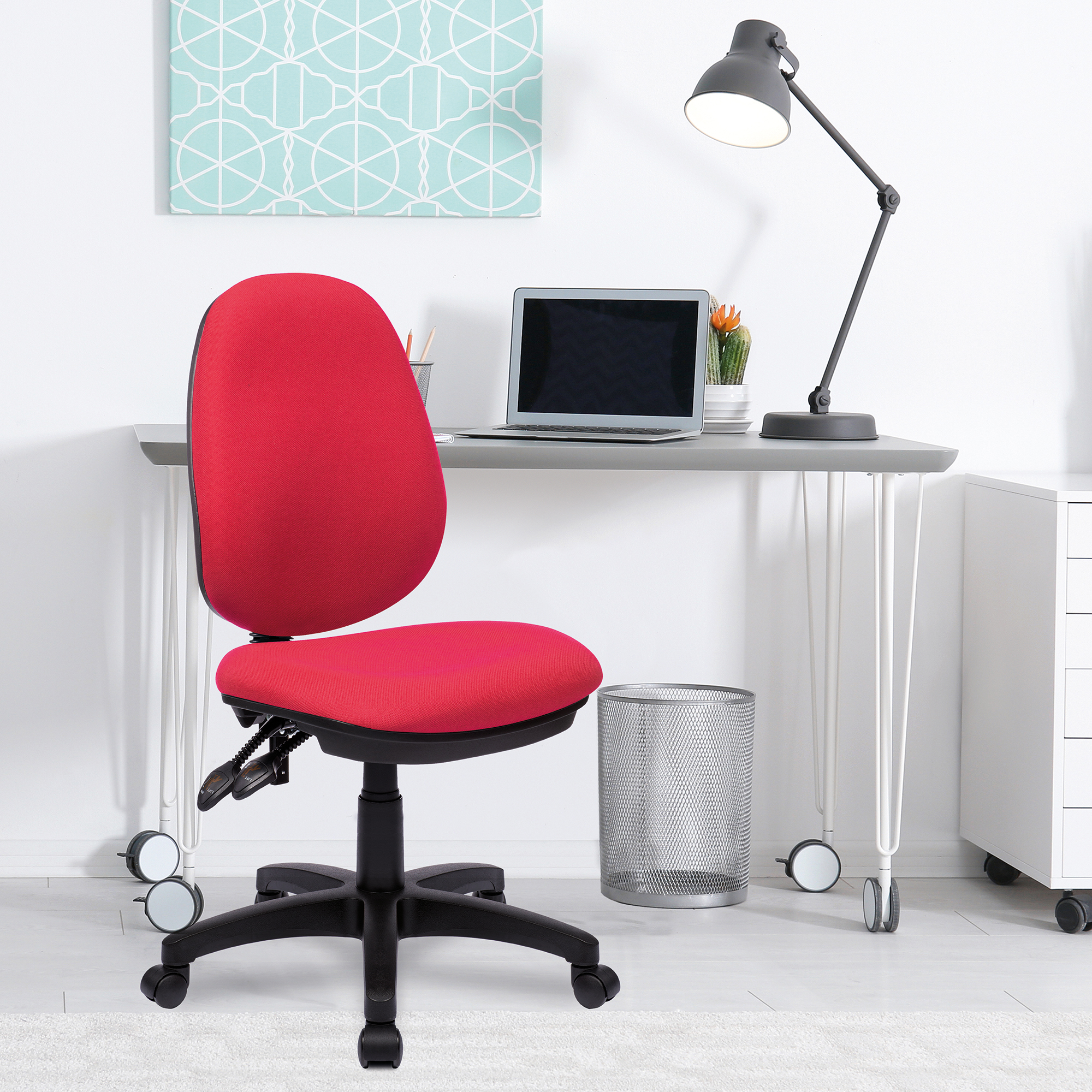 • Contoured backrest with integrated lumbar support, certified to BS EN 1335 Level 3, robust gaslift, black 5 star base