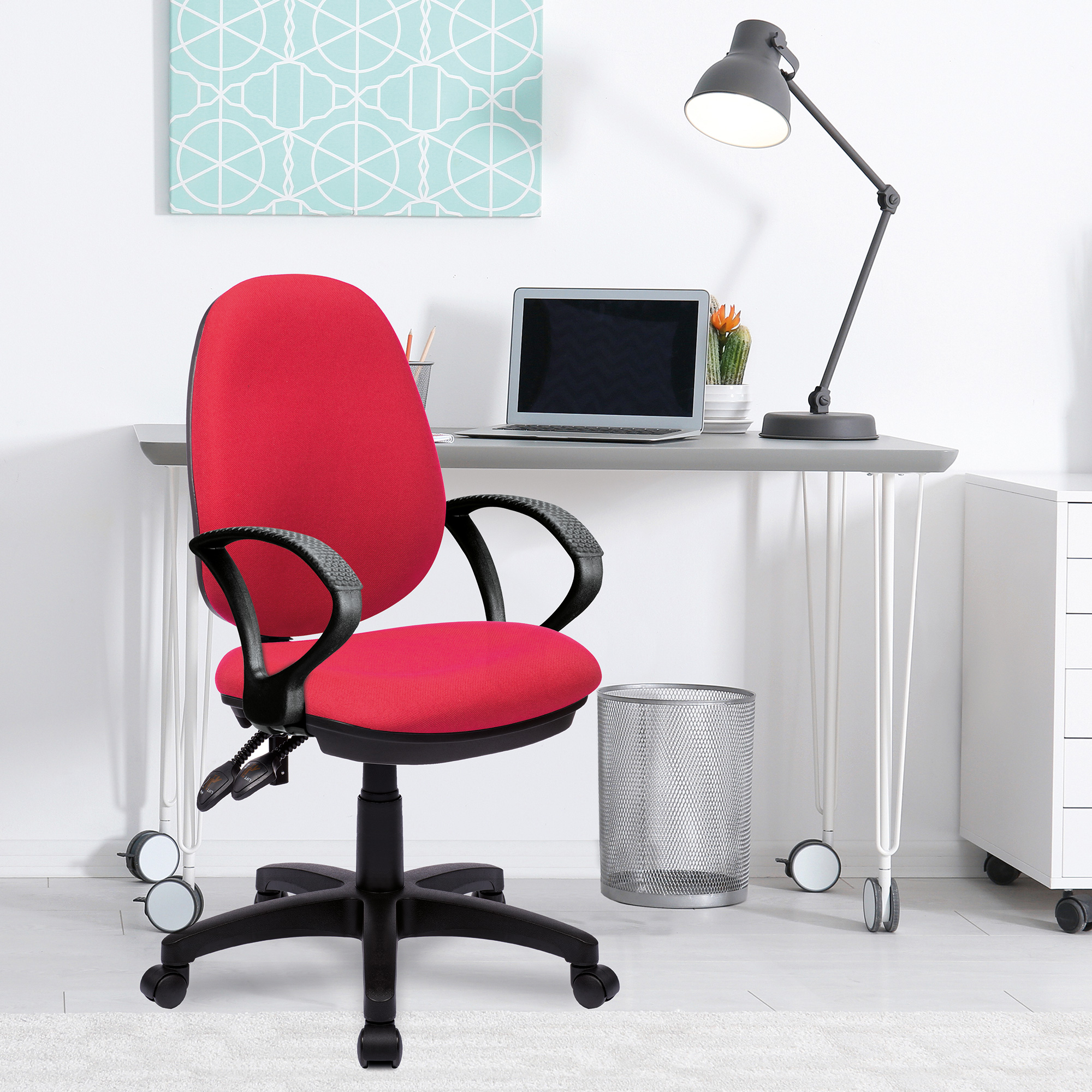 • Contoured backrest with integrated lumbar support, certified to BS EN 1335 Level 3, robust gaslift, black 5 star base