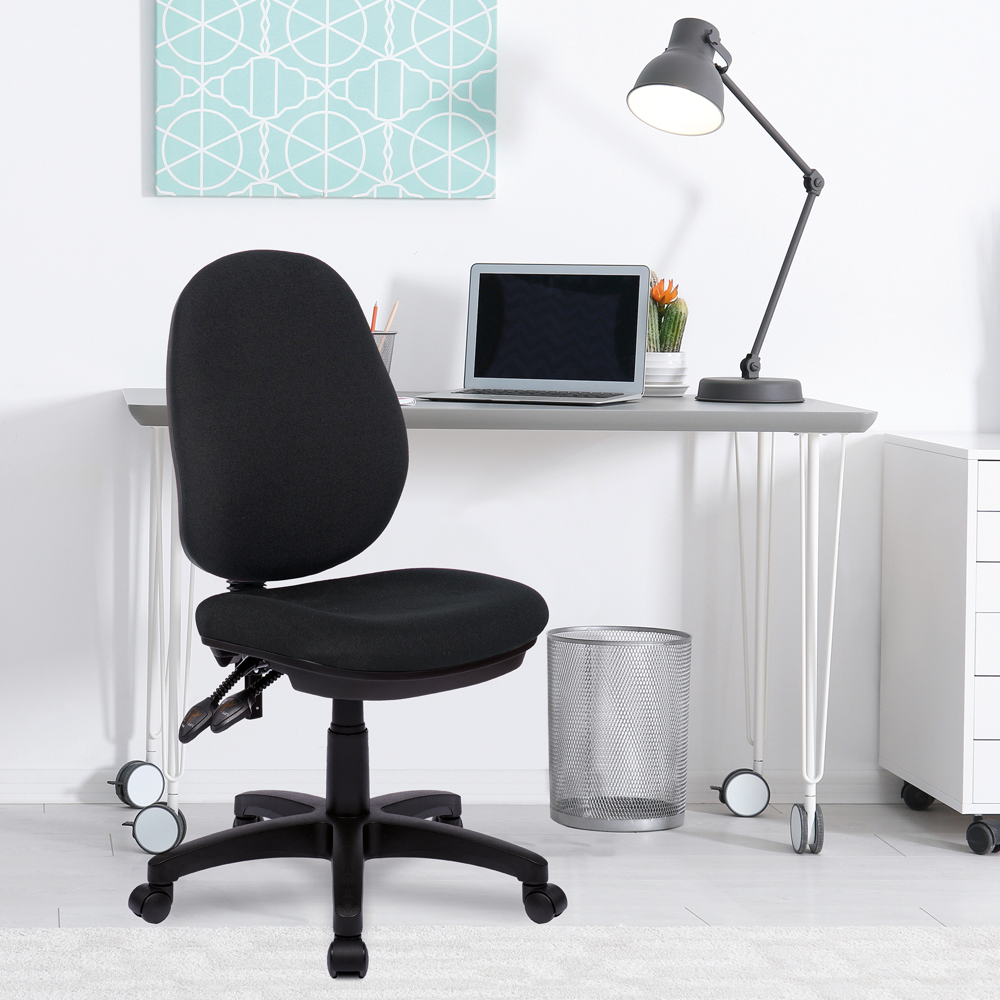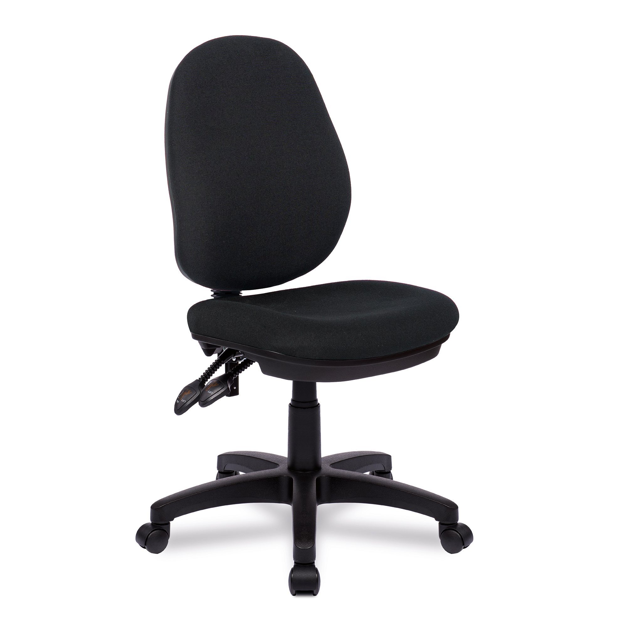• Contoured backrest with integrated lumbar support, certified to BS EN 1335 Level 3, robust gaslift, black 5 star base