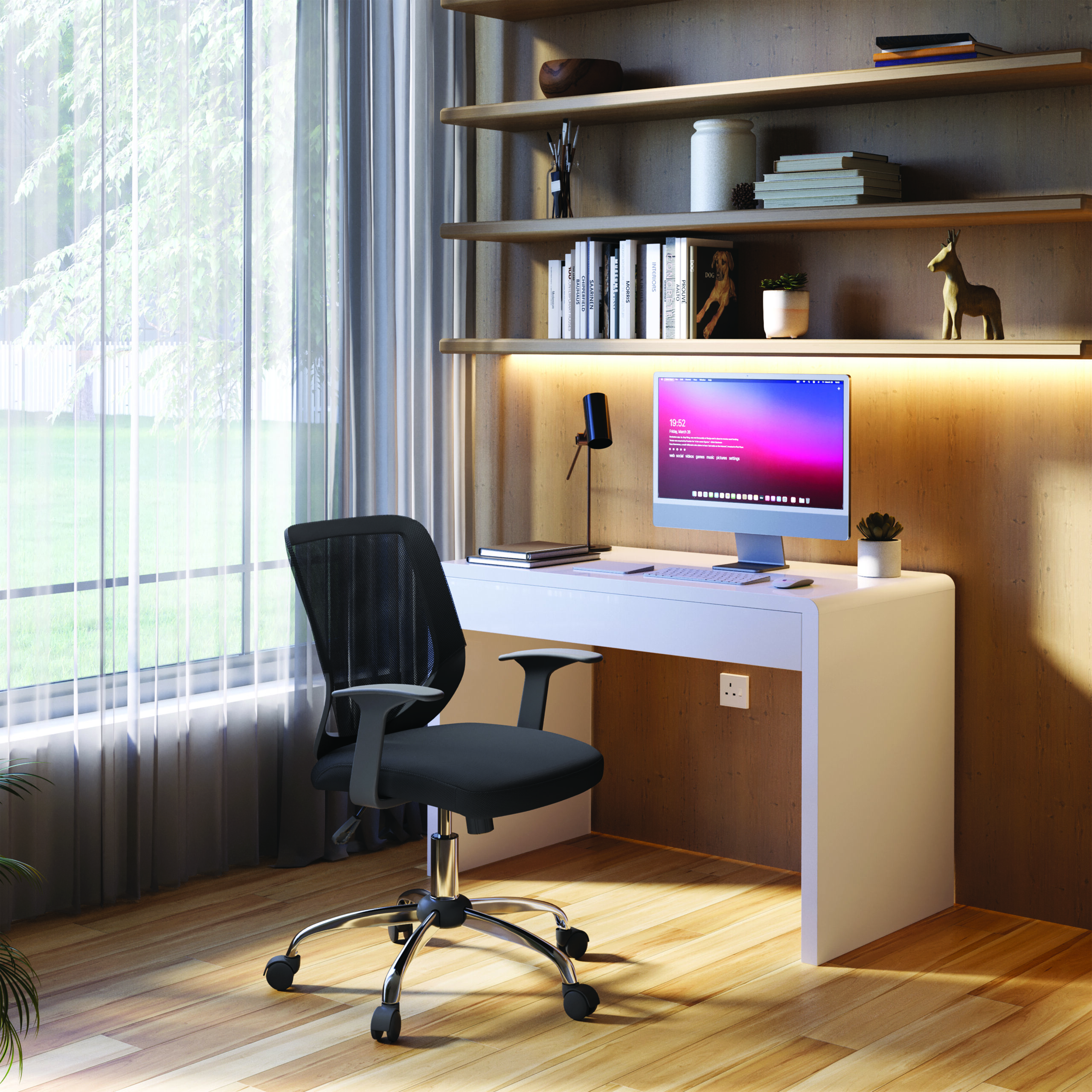 This medium back mesh task chair packs quite a punch, featuring a generously proportioned posture curved upholstered seat with moderate waterfall front, a contoured black nylon mesh backrest, as well as stylish fixed ‘T’ shaped padded arms, gas seat height adjustment and a stylish chrome base. It also offers lockable adjustment to suit your bodyweight and posture, and will provide you with the ultimate level of comfort.