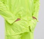 Lightweight nylon with PVC coating on inside, Zip front, Concealed hood, Lower front pockets with flap, Studded cuffs, Hip drawcord, Fully taped seams