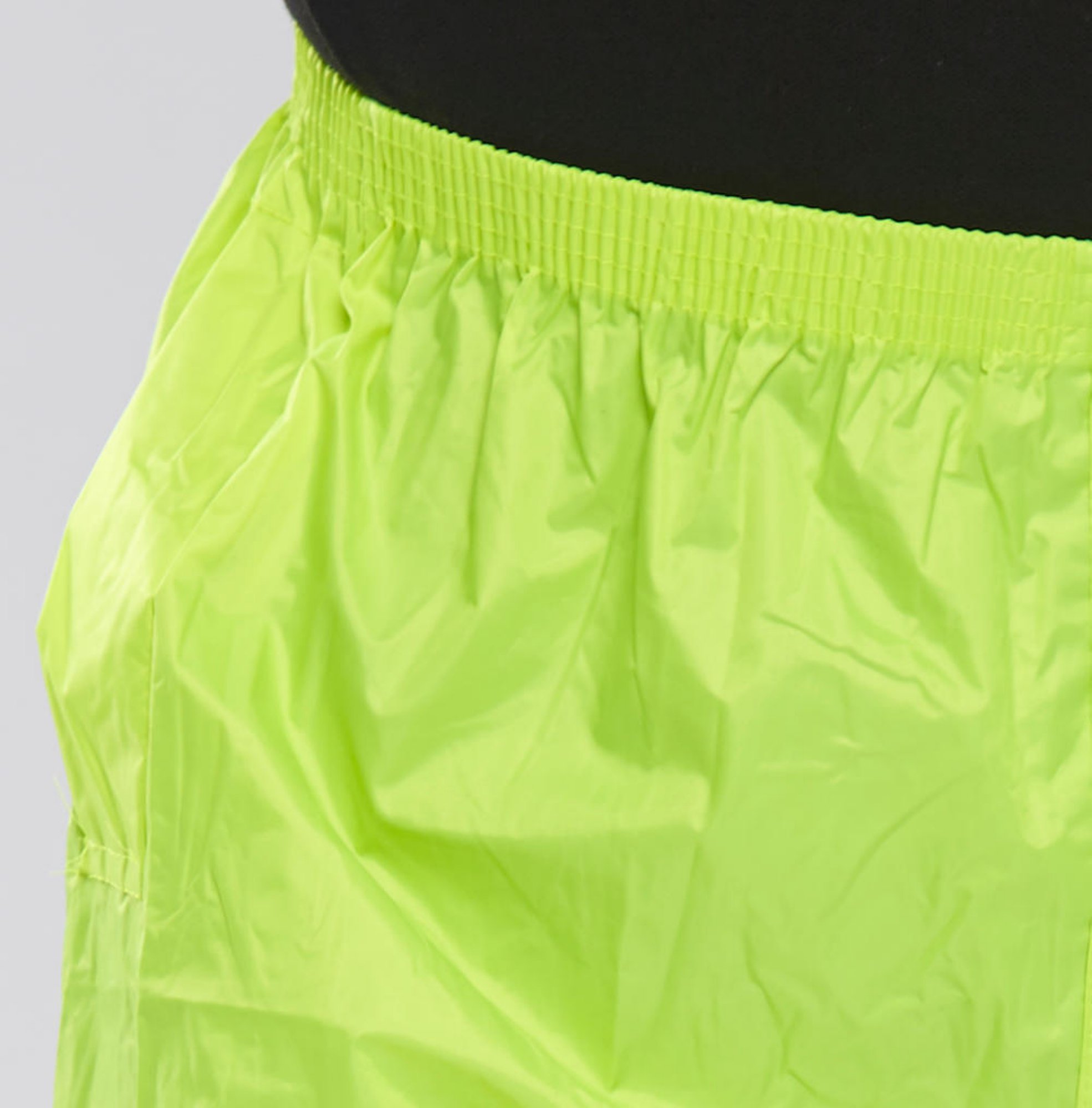 Lightweight nylon, PVC coating to the inside, Elasticated waist, Access to side pockets, Stud fastening to ankles, Fully taped seams