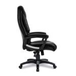 Start as you mean to continue with our dominating high back executive chair. Featuring an integral headrest and deep panel leather effect detailing on both the seat and lumbar sculpted backrest are complemented with matching padded and upholstered armrests finished with a matching 5 star black base. Easy seat height adjustment is provided via a sturdy gaslift and the chair mechanism offers weight tension control – adjustable to suit the user’s individual user body weight and lockable in an upright position.