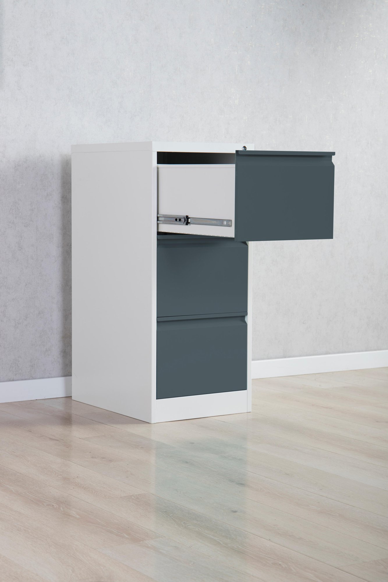 • COLOURS – Finished in a high quality powder coated light grey paint (RAL7035) with striking Anthracite Grey (RAL7016) drawer fronts, to add splash of colour to your Workspace