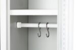 • INTERNAL FITTINGS – Supplied with a fixed shelf, hanging rail and a coat hook. Able to accommodate coats and overalls on standard coat hangers.
