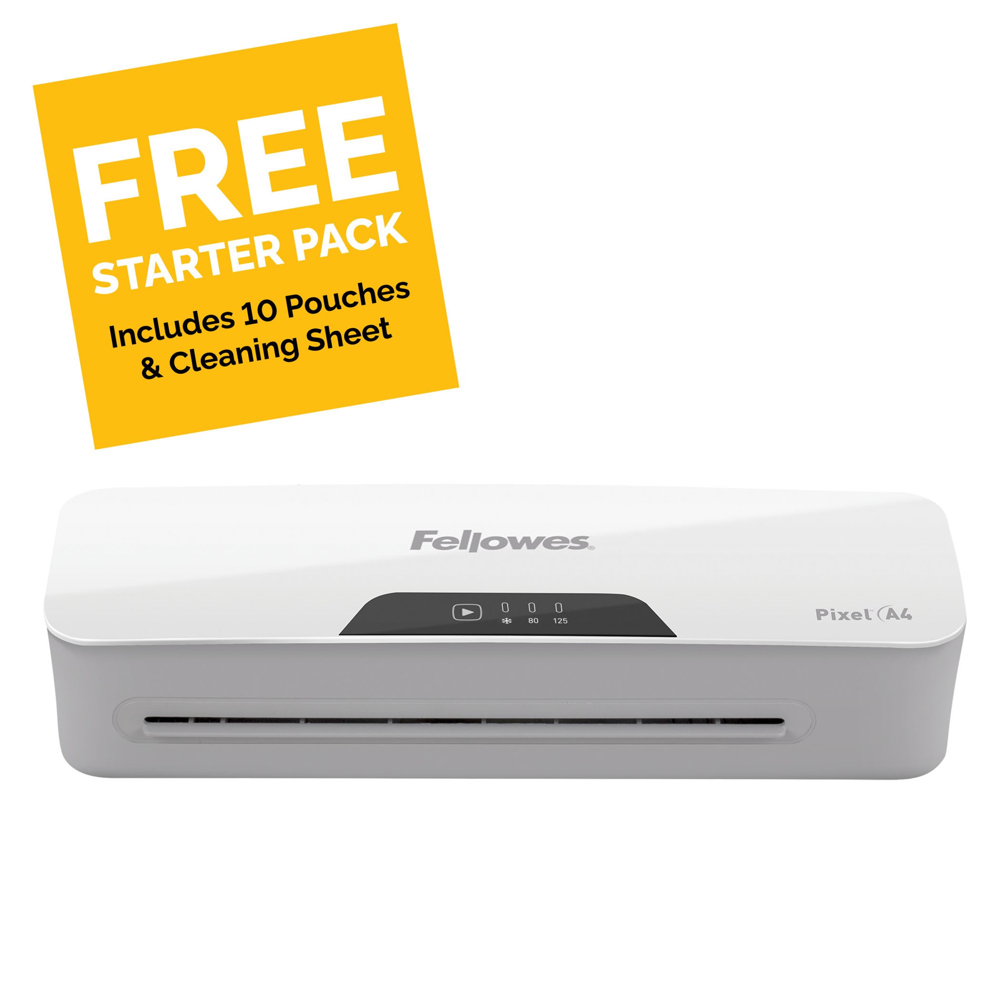 • STARTER PACK INCLUDED – Your Fellowes A4 laminator includes a 10-document starter pack with samples of Fellowes A4 laminating pouches that give a suitable finish to your laminated work