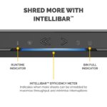 • MAXIMISE SHREDDING PERFORMANCE – The Intellibar responsive technology provides in-use feedback that maximises shredder performance – preventing interruptions by indicating when bin & sheet capacity is nearing the limit, or the run time is close to being reached