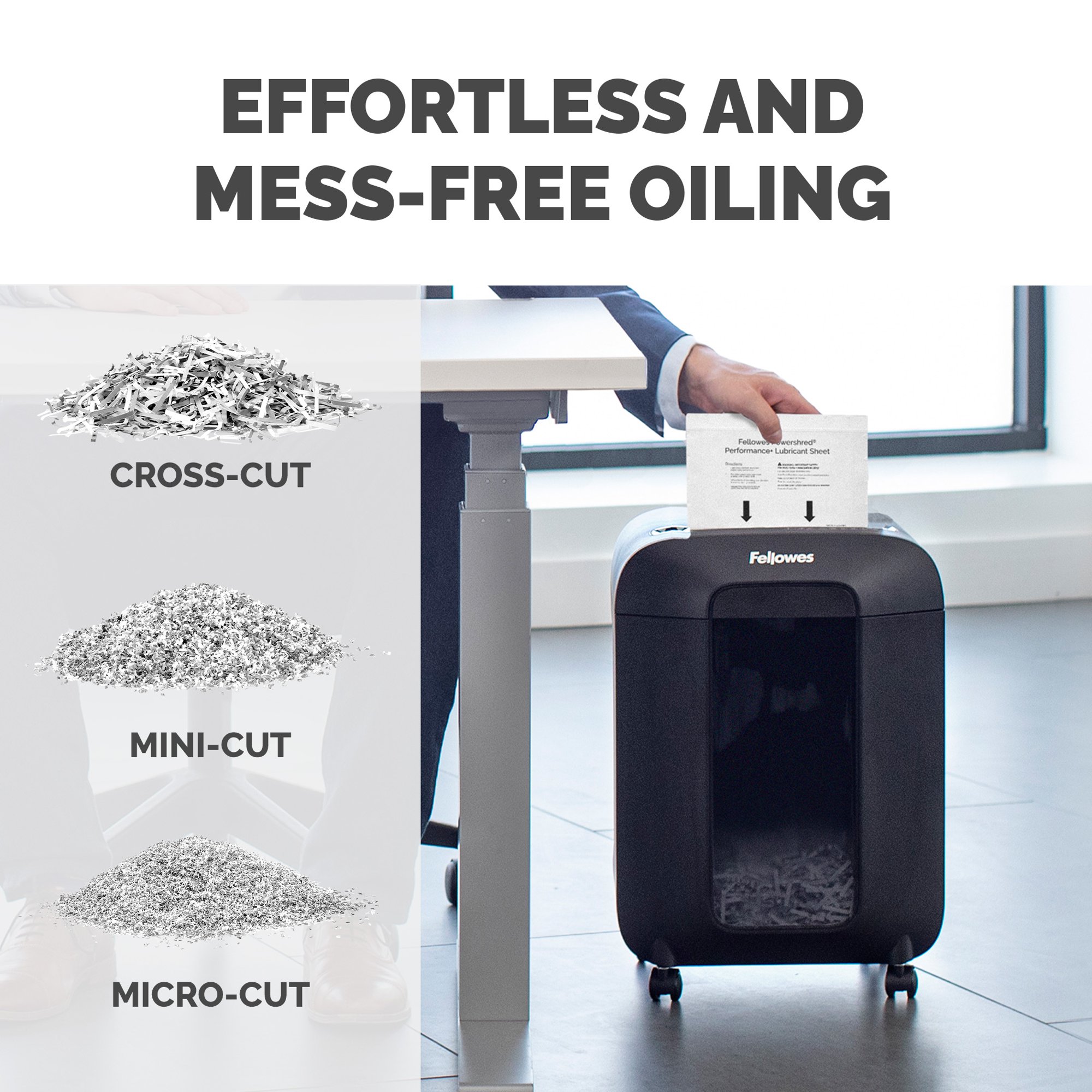 • For use with all Fellowes® cross-cut and micro-cut shredders
