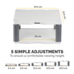 • MULTIPLE HEIGHT ADJUSTMENTS – The Premium monitor stand offers five different stacking height adjustments to maximise viewing comfort (Height Adjustments: 6.5/8.5/11.5/13.5/16.5cm)