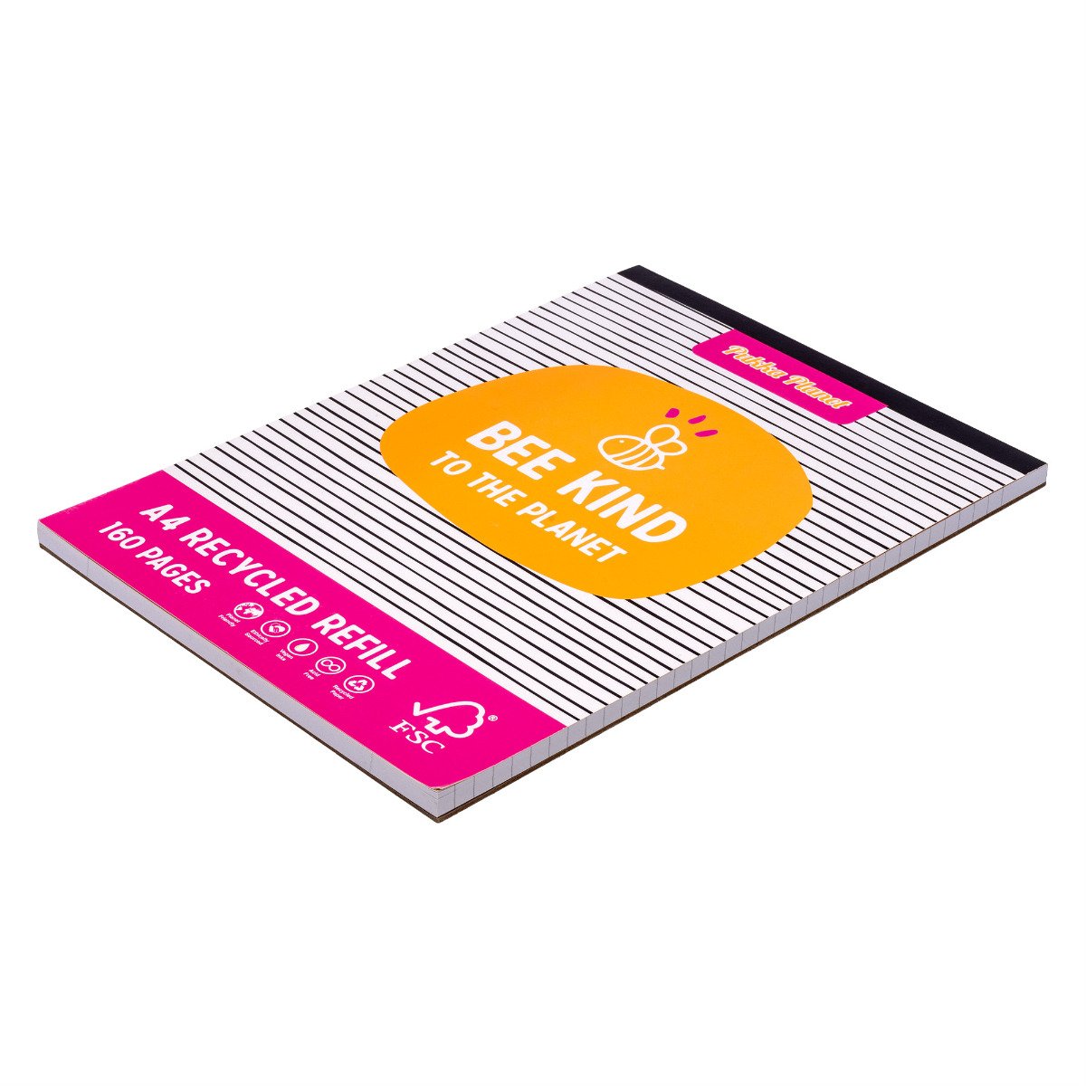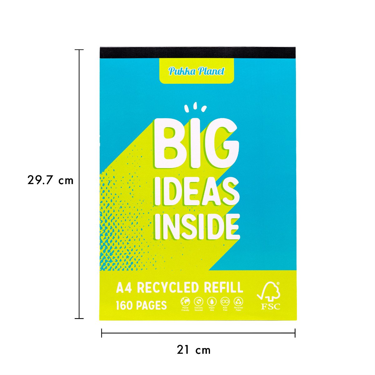 The refill pads measure W: 210mm x H: 297mm , making them an ideal size for everyday note-taking. The tape head bound pad allows for unrestricted writing, this is especially helpful if you are left-handed. Each sheet is 4-hole punched which allows you to place your notes into standard files. The refill pads have 160 pages of 80 GSM FSC® Recycled paper, creating a smooth writing surface for all your notes. Each notebook is planet friendly and ethically sourced, from the ink to the paper, the whole notebook is vegan- friendly and can be recycled after use. These Pukka Planet refill pads are sold as an assorted pack of 6.