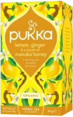 Pukka Tea Lemon Ginger & a Touch of Manuka Honey Teabags in Envelopes (Pack 20) – 5063270111079