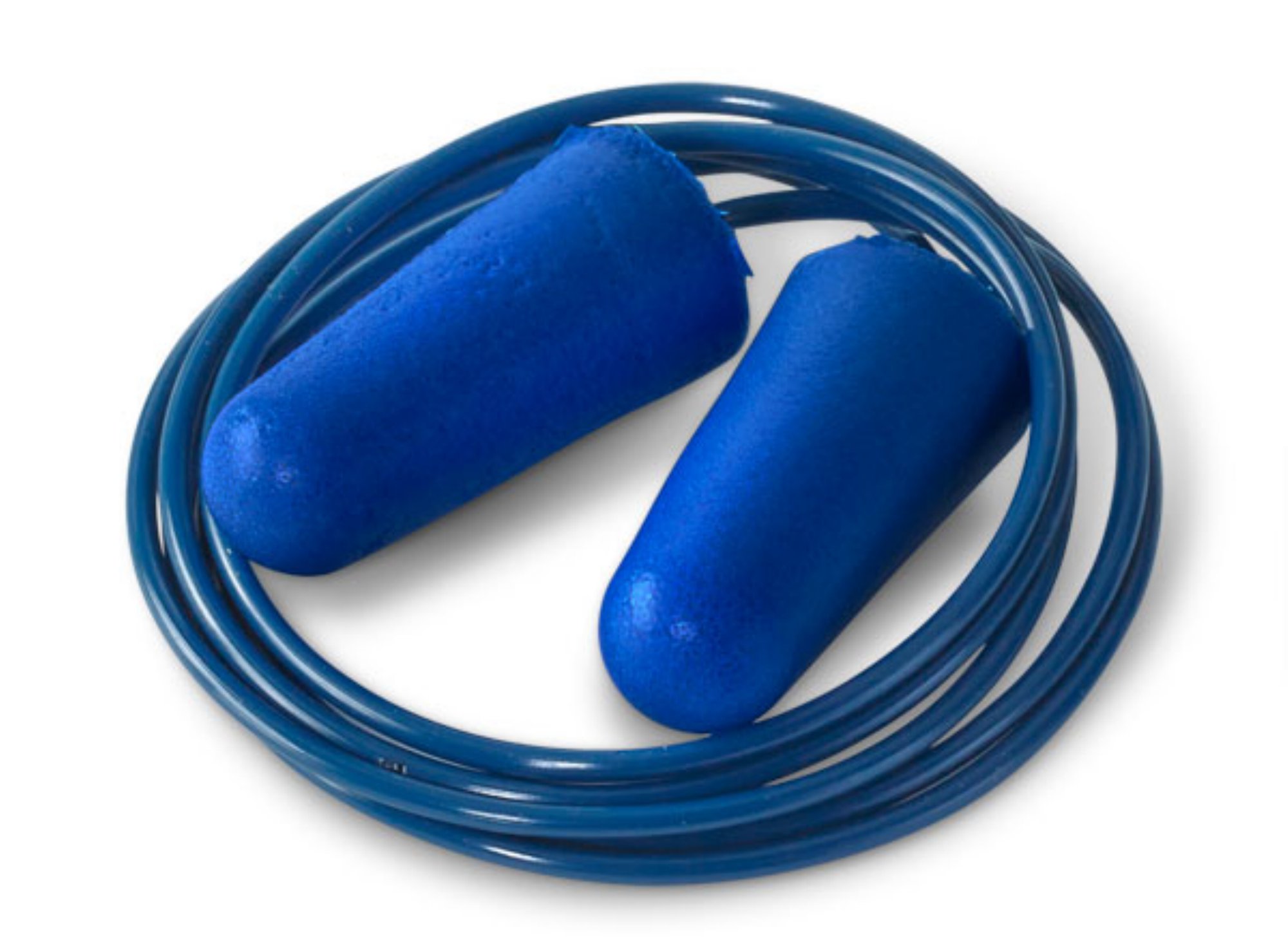 Foam disposable ear plugs, Conforms to EN352-2:2002, SNR 39db, H=38, M=37, L=34, Corded detectable