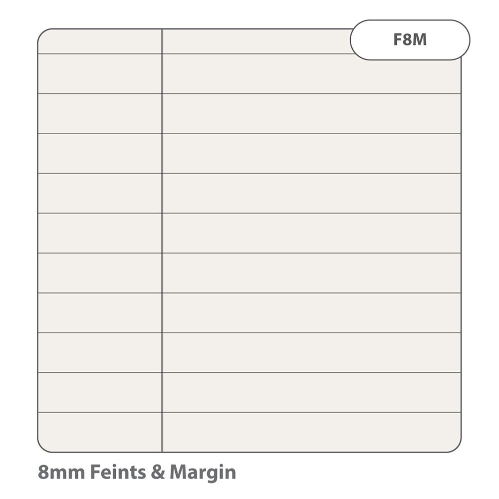• Ruled with 8mm feints and a margin