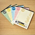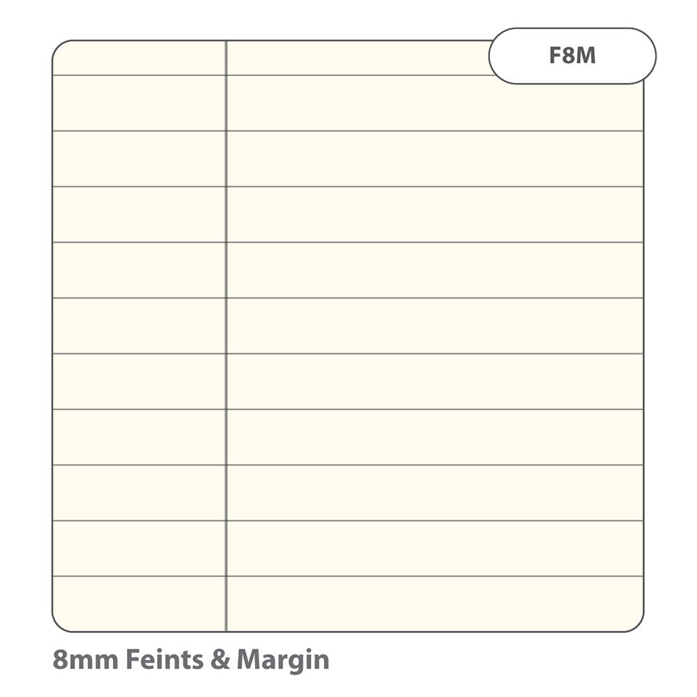 • Ruled with 8mm feints and a margin on education-standard tinted paper