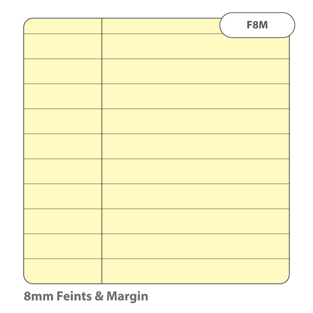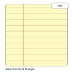 • Ruled with 8mm feints and a margin on education-standard tinted paper
