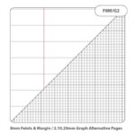 • Combined ruling with 8mm feints and a margin on one side for written notes and a 2:10:20 graph ruling on the reverse