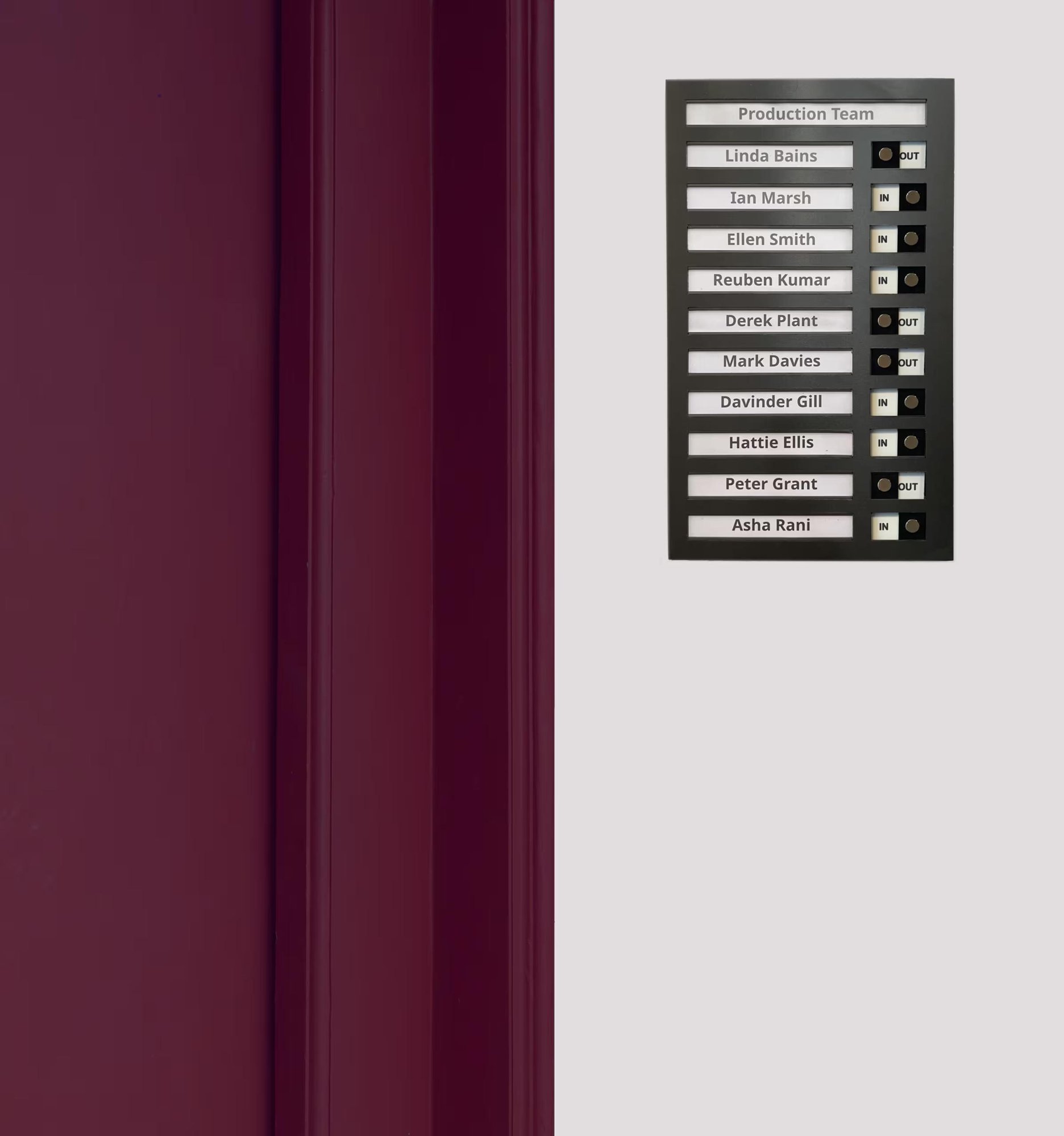 Each In/Out Name Board is made up in multiples of 10 names so you can choose how best to display your boards. 10 name = 1 board ; 20 name = 2 boards; 40 name = 4 boards. Simply add additional 10 name panels to create a larger display.
