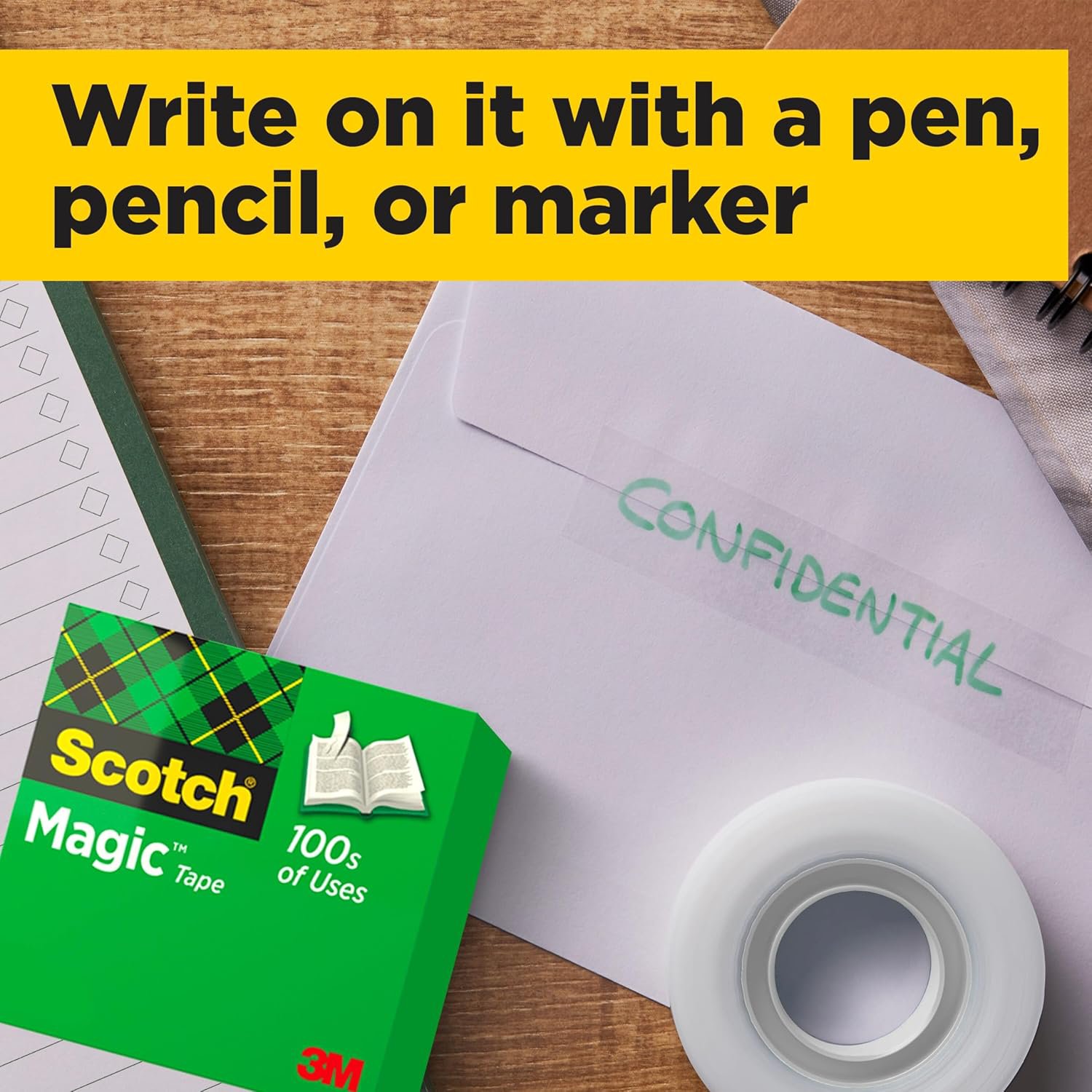 Scotch® Magic™ Tape is the original invisible matte-finish tape to mend and repair all the little imperfections at home, school and the office. The sticky tape gives you a strong, secure, and permanent seal using trusted 3M adhesive technology that disappears on application. It has a easy-to-apply design and is photo-safe that doesn’t dry out or yellow with age. Scotch® Magic™ Tape is available in a variety of widths and lengths, and fits a wide range of tape dispensers.