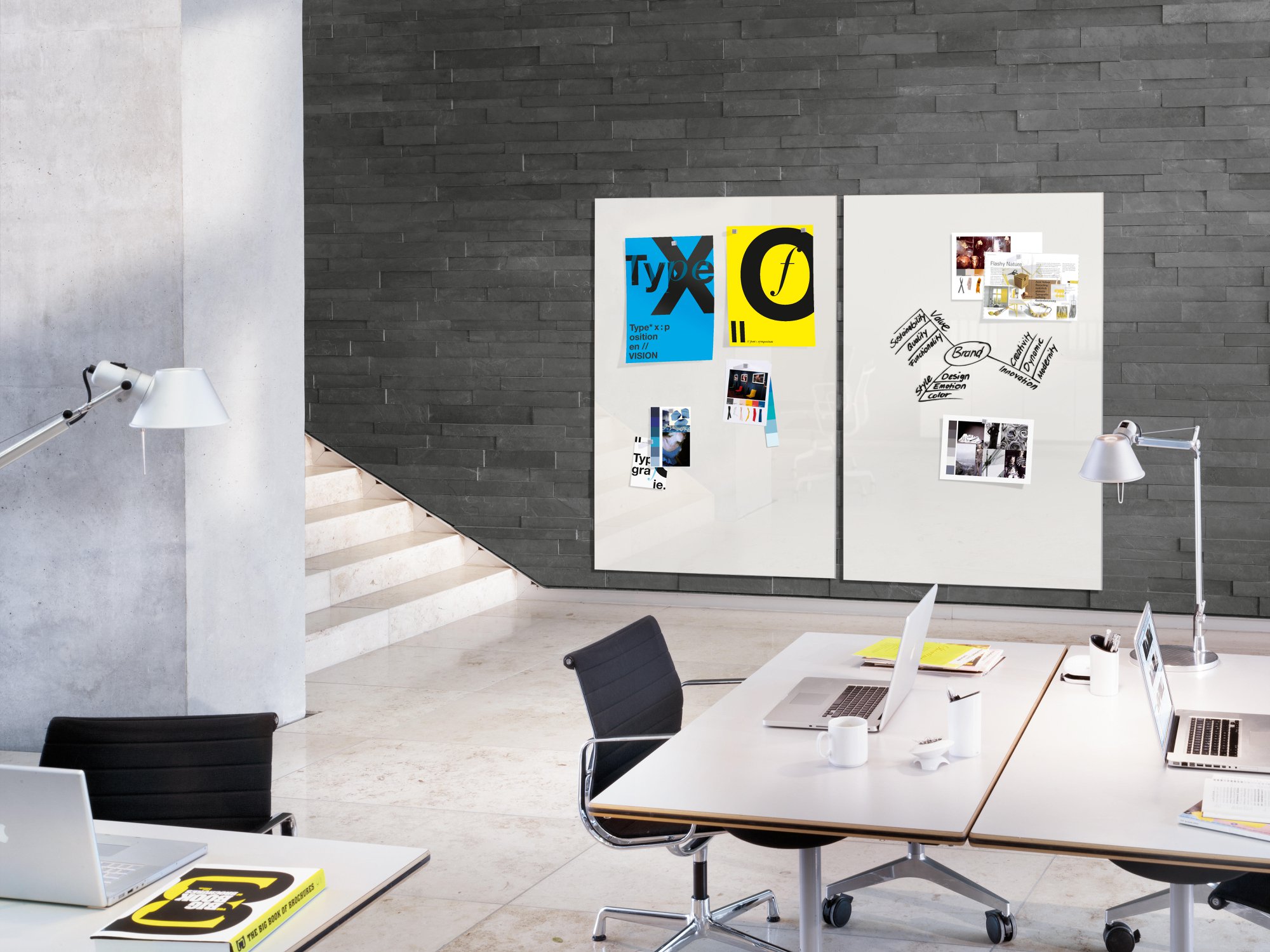 • Without a frame for a clean look – appears to float freely in front of the wall – and enables almost seamless writing across a magnetic wall made up of several boards