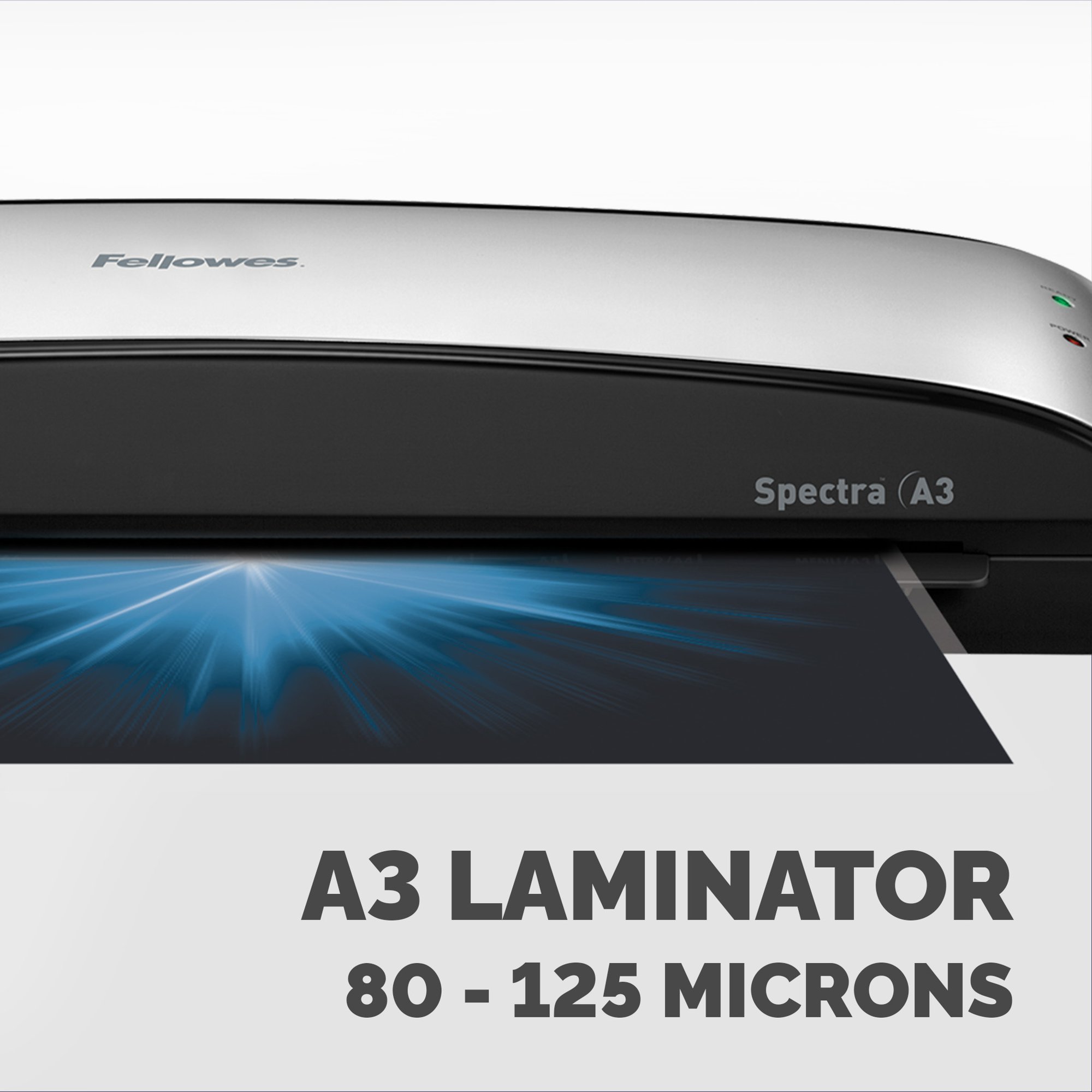 Get that professional finish at home with the Fellowes Spectra A3 home office laminator. Ideal for laminating your photos, project work and craft projects. As with all Fellowes Laminators, it is 100% jam free when used with Fellowes branded pouches so you will always get that perfect, smooth result. The Spectra has been designed for regular use and comes with Auto Shut off after 30 minutes, and a handy release lever to remove or re-align any mis-fed documents. Suitable for use with Fellowes 80 – 125 micron Pouches. Includes starter kit for 10 documents and comes with a 1 year warranty.