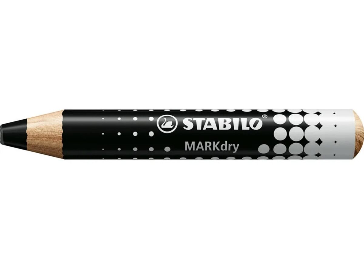 Introducing STABILO MARKdry marker pencil for use on whiteboards, chalkboards, show me boards, glass and flipcharts – with constant bright colour output until the last stroke. The MARKdry can be wiped off non-porous surfaces with a damp or dry cloth (included in the pack) and easily washes off hands and clothes.