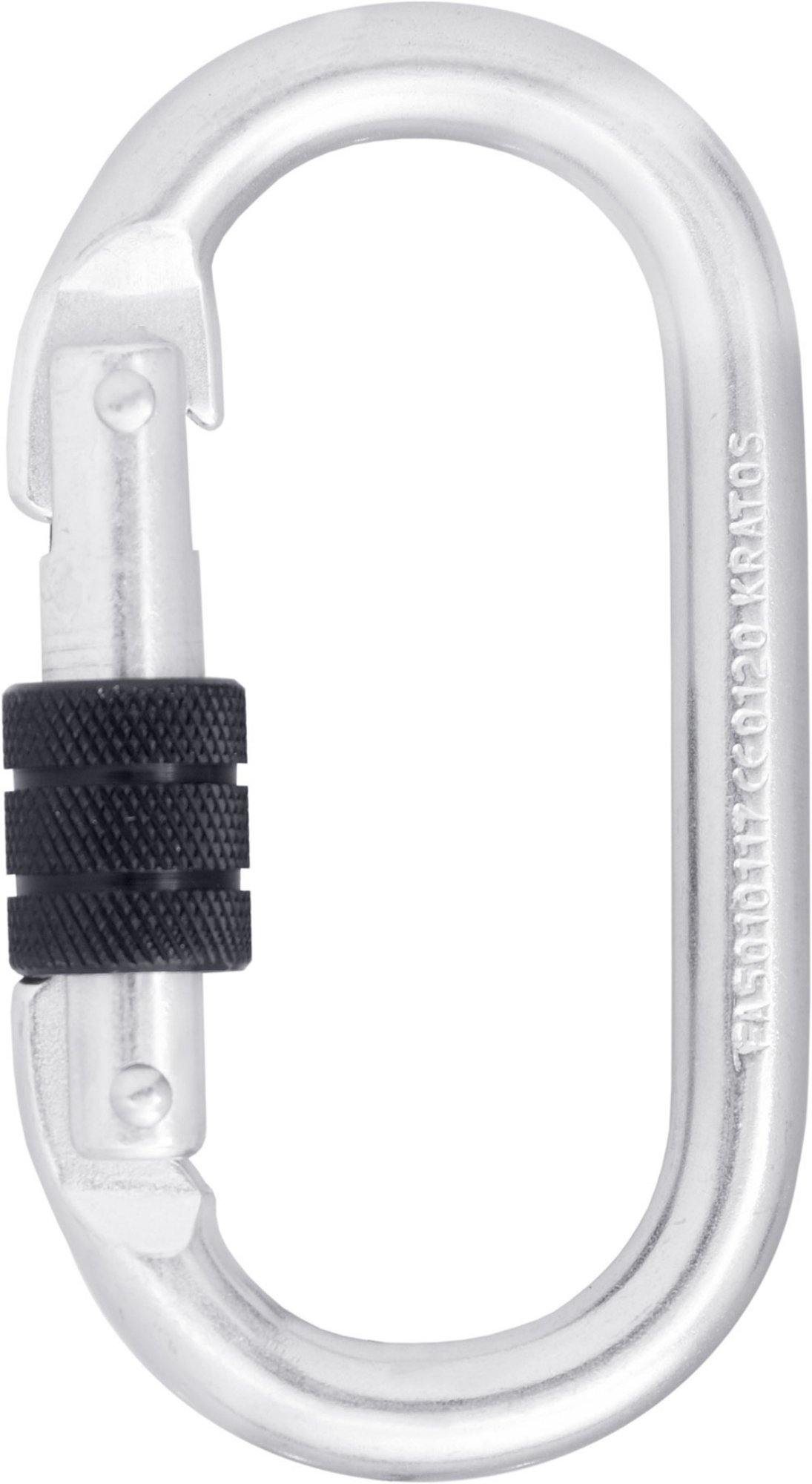 Steel screw-locking karabiner, Material/Composition: Alloy Steel. Gate opening: 17mm, Minimum breaking strength: 25kN. Conforms to EN362:2004 Class B.