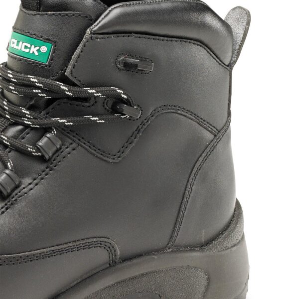 Black Action Mesh Upper with grey/silver stripes, Grey EVA/Black rubber sole, 3 woven black/grey lace loop fixings and 1 plastic grey eyelet, Comfort insole, Click branding, Metal free, Composite toe cap, Reinforced midsole, Water resistant, Conforms to EN ISO 20345:2011 S3 SRC