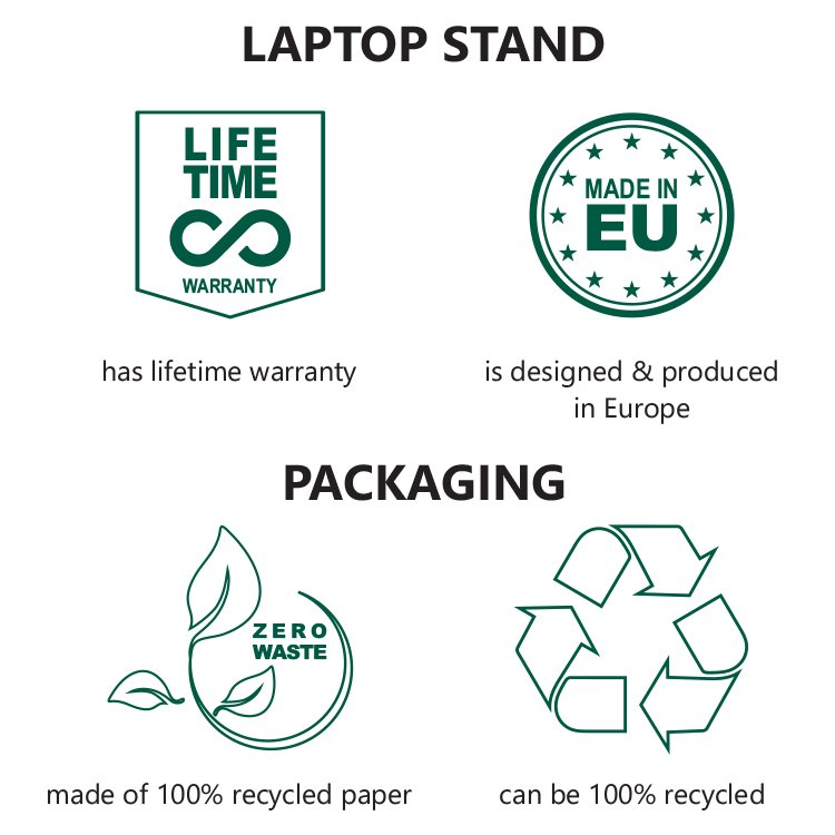 Super thin integrated ergonomics: The standivarius aero evo is an ergonomic laptop stand attached to the bottom of the laptop for business comfort and pain-free work.