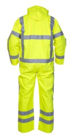 Zip front with double storm flap and press stud closure, Fixed hood, Wind cuffs, Adjustable leg opening with press stud closure, Mesh polyester lining, Simply no Sweat (SNS) 210gsm Polyester laminate fabric, Highly breathable providing great comfort, Durable and cost effective, Smooth textile finish, Conforms to EN ISO 20471:2013 Class 3 High Visibility, Conforms to EN343:2003+A1:2007 Class 3:3, Conforms to EN ISO 13688:2013 General requirements for protective clothing
