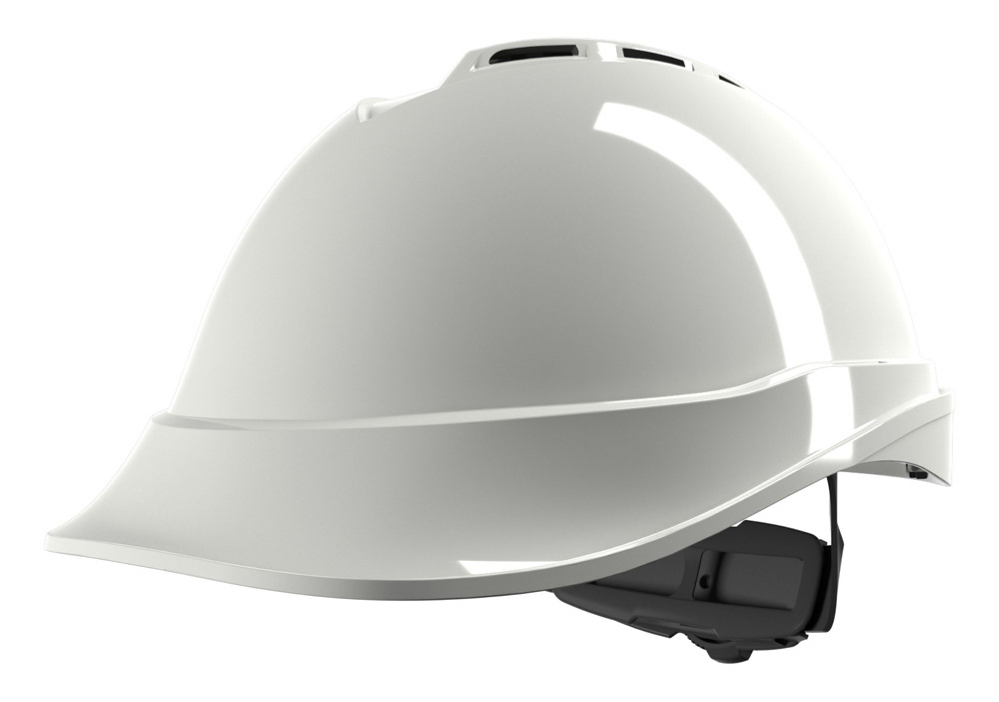 UV Stabilised ABS, scratch resistant vented helmet shell, Lightweight, Short peak for increased upward vision, Limited rain gutter, Provides lateral crushing protection *-Fas-Trac® III with wheel ratchet and wipeable PVC sewn in Sweatband, Standard slots to easily attach MSA visors and/or ear muffs, 2 or 3-point chinstraps to be bought separately, 2- point chinstrap versions, MSAB0259378 & MSA9100001, Available in a range of colours: White, Yellow, Red, Blue, Green, Orange, Hi Vis Orange and Hi Vis Yellow, Non-vented versions, other suspensions including Push-Key and helmet printing available upon request, Conforms to the following Standards, EN 397:2012 Safety industrial helmets, Electrostatic-Ineris certified (testing according to EN ISO 80079-36:2016), Suitable for use in ATEX environments hazardous zones 1,2, 20, 21 and 22 In addition, Non-vented versions are certified to:, EN 50365 Insulating helmets for use on low voltage installations MSA reference: GV612-0000000-000 VGARD 200 V WHITE FTIII+PVC