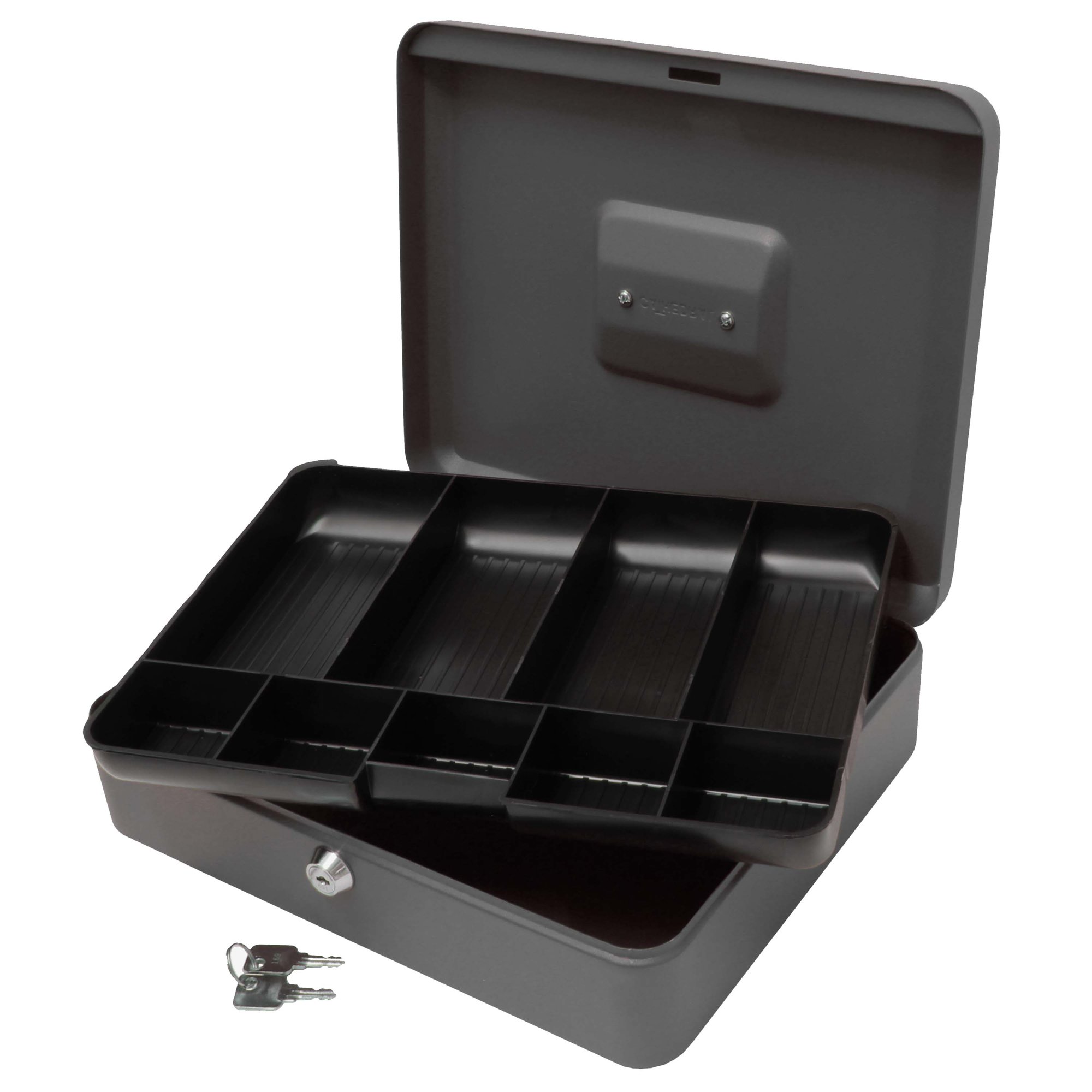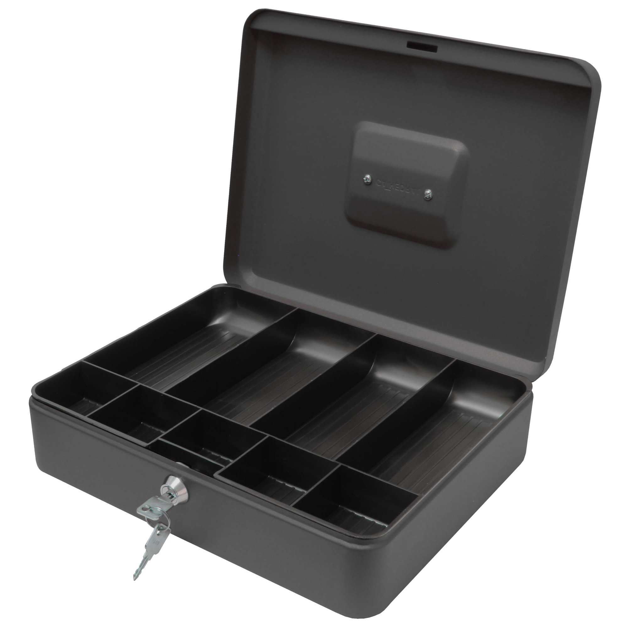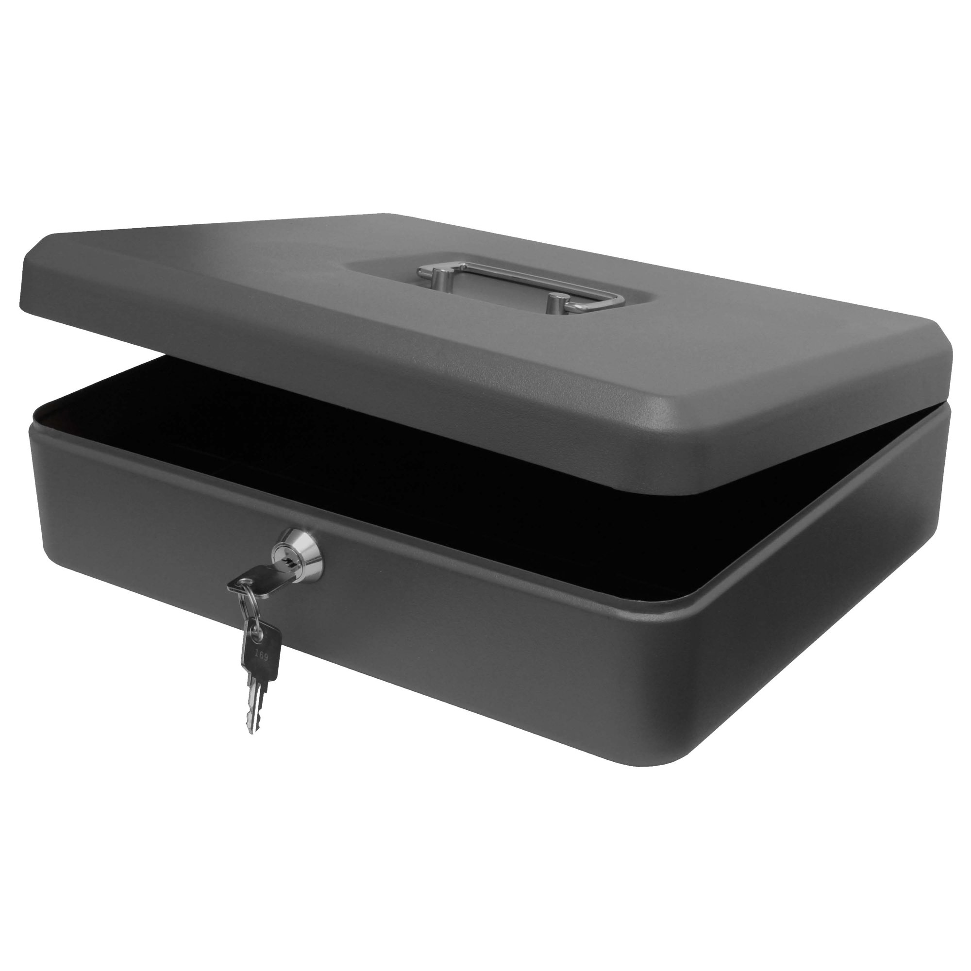 The 12 Inch Steel Cash Box offers secure storage for cash, coins, and small valuables. Constructed from durable powder-coated steel, it includes a fold-down carrying handle and a lift-out tray for convenient organisation. The secure cylinder lock ensures the protection of valuables and cash, making it suitable for a variety of settings.