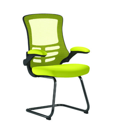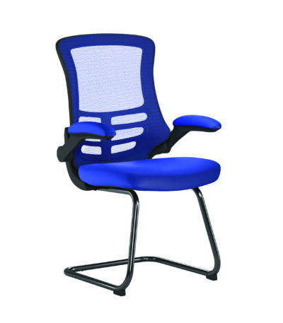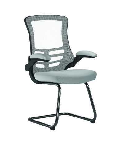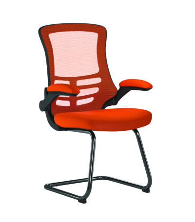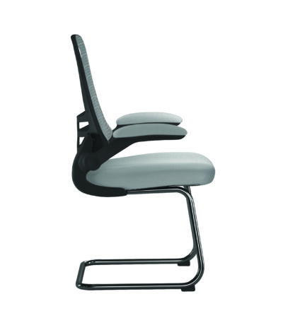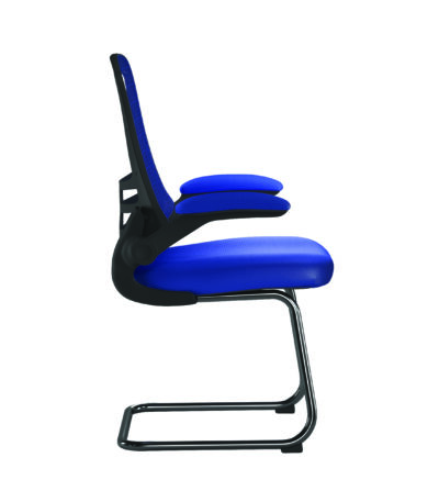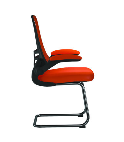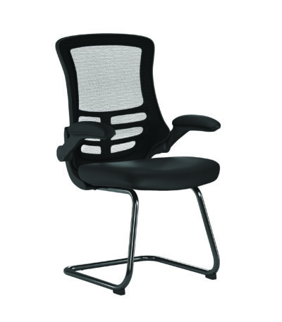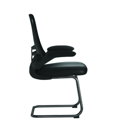 Designer High Back Mesh Cantilever Chair with Black Shell, Black Frame and Folding Arms