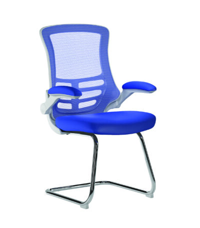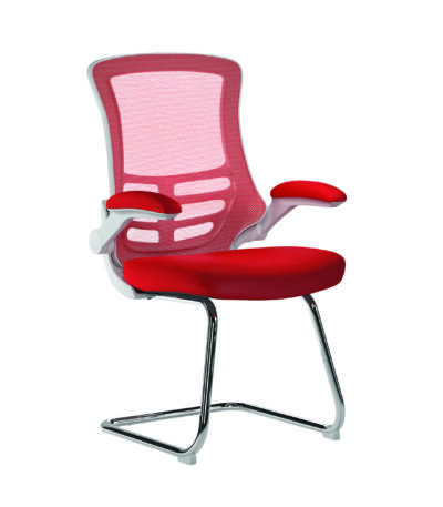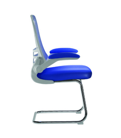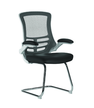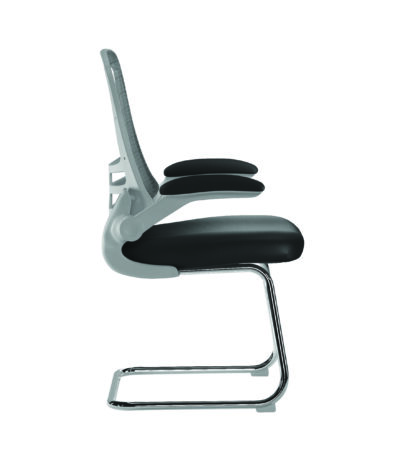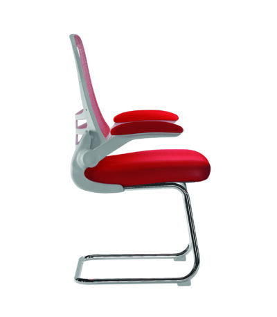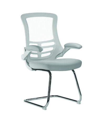 Designer High Back Mesh Cantilever Chair with White Shell, Chrome Frame and Folding Arms